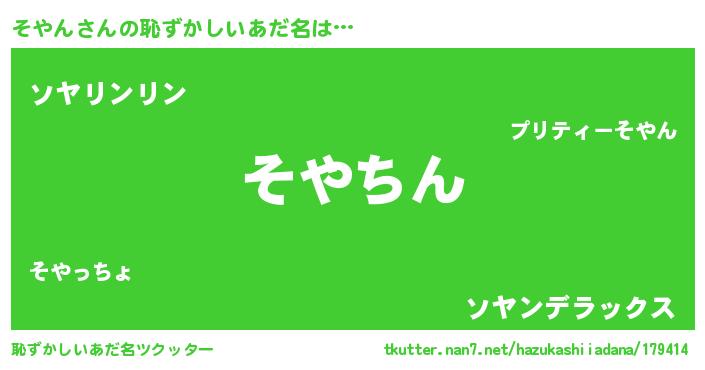 | 意味不明あだ名 | 『永久保存そやん』『なめこ科そやん属』 |