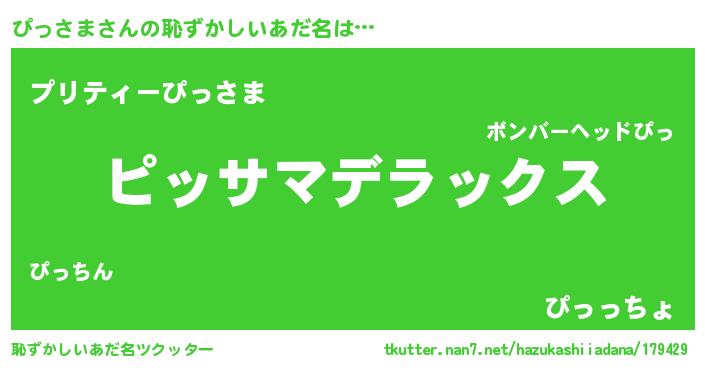 | 男性向けラノベタイトル風あだ名 | 『Re:ぴっさまから始める異世界生活』 |