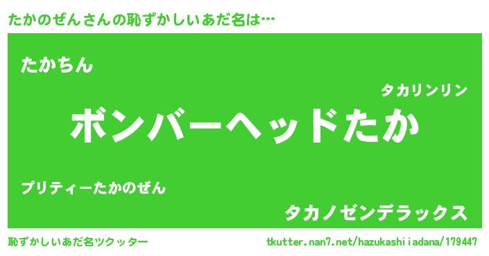 | ヘコむあだ名 | 『たかのぜん(笑)』『たかぷりん』 |