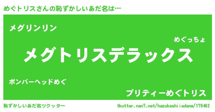 | 男性向けラノベタイトル風あだ名 | 『メグトリススレイヤー』 |