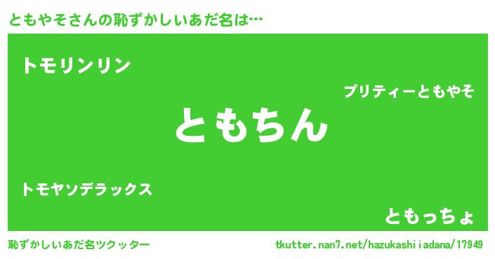 | ヘコむあだ名 | 『ともやそ(震え声)』『ともぷりん』 |