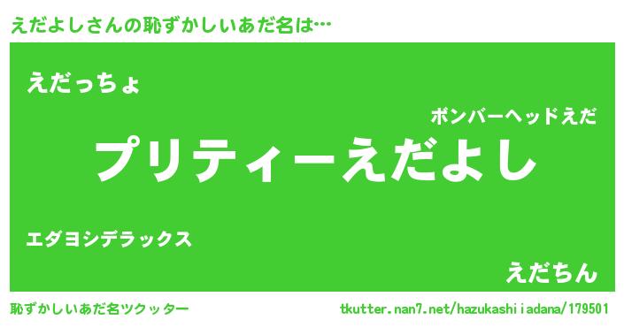 | 意味不明あだ名 | 『住所不定無職えだよし(47歳)』 |