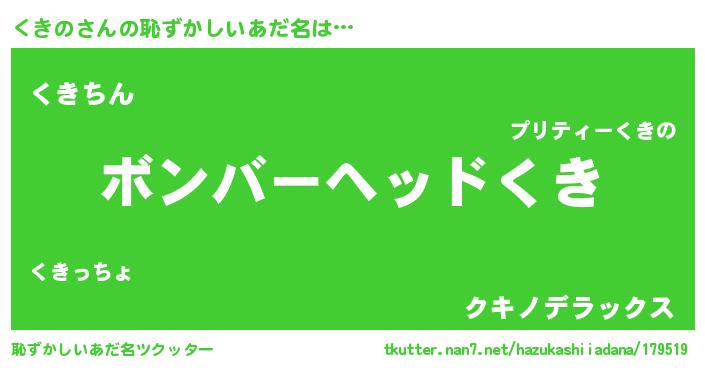 | ヘコむあだ名 | 『くきの(遠い目)』『くきもー』 |