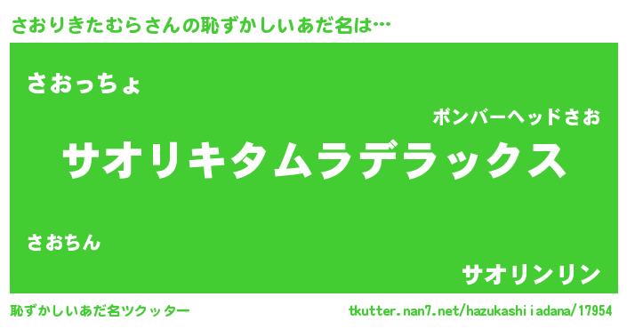 | 男性向けラノベタイトル風あだ名 | 『転生したらさおりきたむらだった件』 |