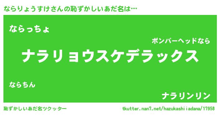 | ヒーロー風カッコイイあだ名 | 『最強戦士ナラリョウスケ』 |