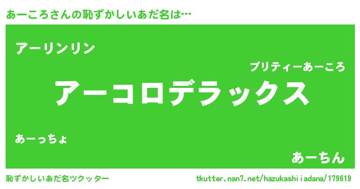 | 意味不明あだ名 | 『自称あーころ』『たけのこ科あーころ属』 |