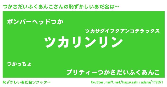 | 欧米人風あだ名 | 『ダレノガレつかさだいふくあんこ』 |