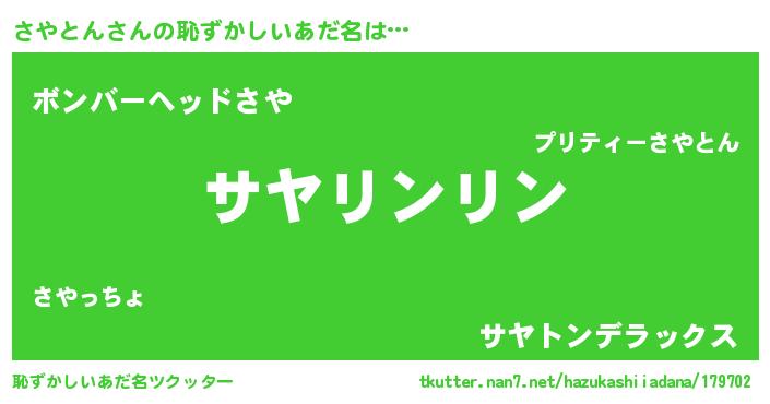 | 男性向けラノベタイトル風あだ名 | 『ダンジョンにさやとんを求めるのは間違っているだろうか』 |