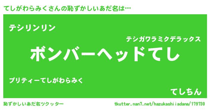| ヘコむあだ名 | 『てしっぺ』『てしがわらみく(震え声)』 |