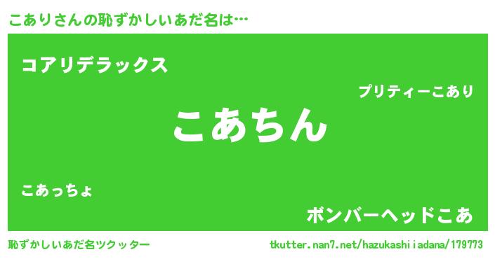 | 意味不明あだ名 | 『永久保存こあり』『自称こあり』 |