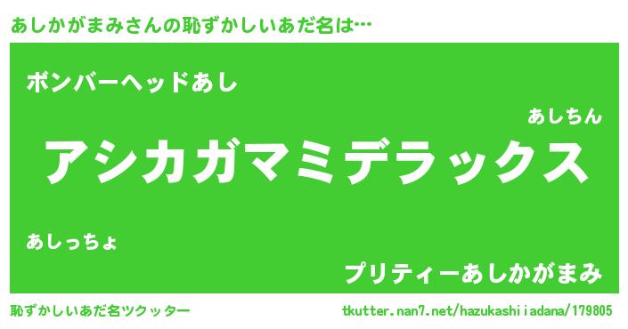 | 意味不明あだ名 | 『自称あしかがまみ』 |