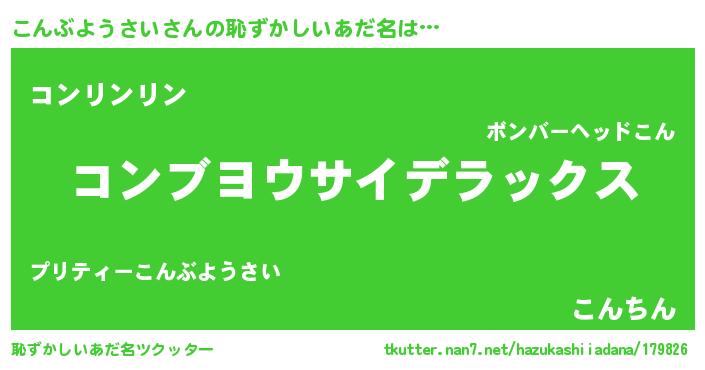 | 料理風あだ名 | 『こんぶようさいごはん』 |