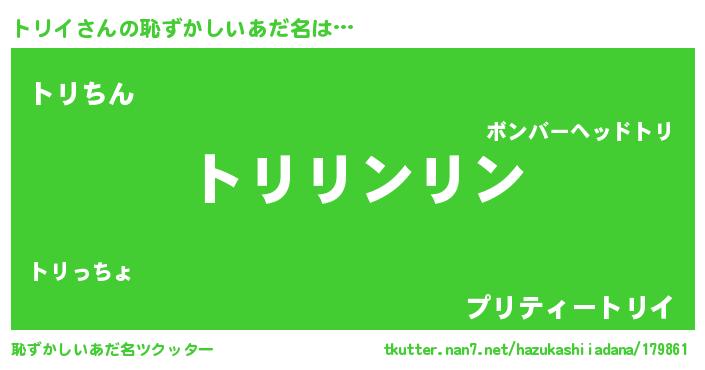 | ヘコむあだ名 | 『トリを』『トリイ(震え声)』 |