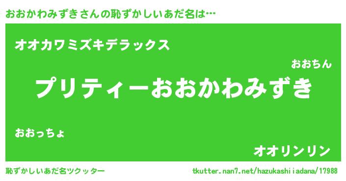 | 男性向けラノベタイトル風あだ名 | 『この素晴らしい世界におおかわみずきを!』 |
