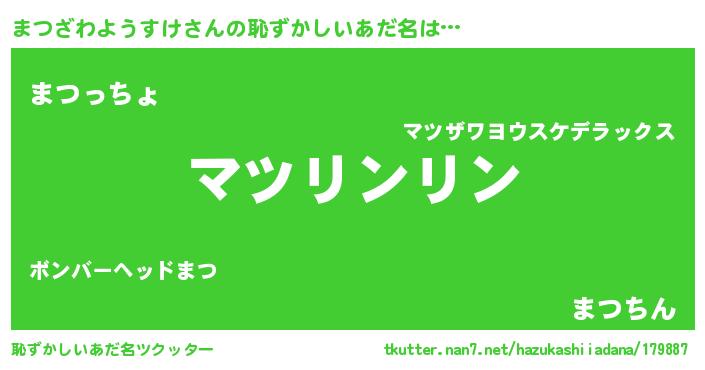 | 意味不明あだ名 | 『とにかく怪しいまつざわようすけ』 |