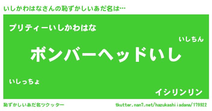 | ヘコむあだ名 | 『いしふぇ~』『いし太郎』『豆乳』 |