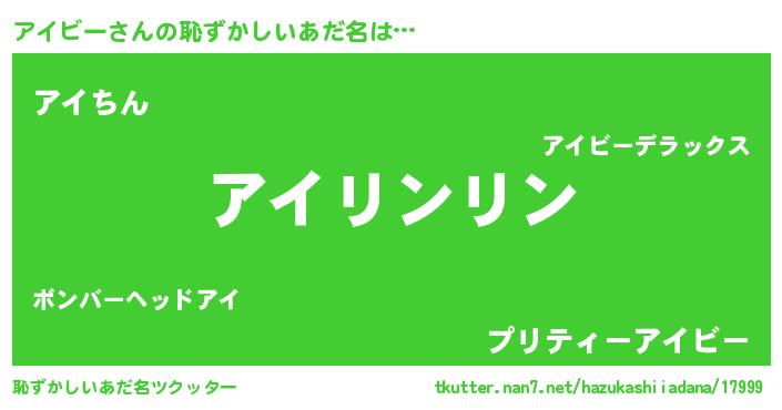 | ヘコむあだ名 | 『アイぷりん』『アイビー(笑)』 |