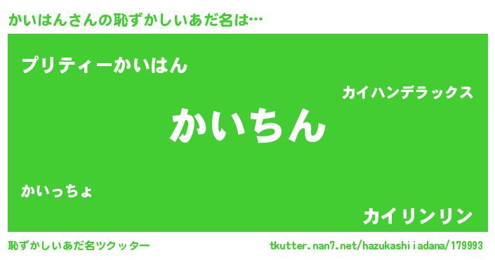 | ヘコむあだ名 | 『かいはん(苦笑)』『かいふぇ~』 |