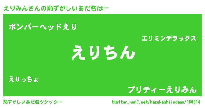 | ヘコむあだ名 | 『えりみん(遠い目)』『えりにゅー』 |