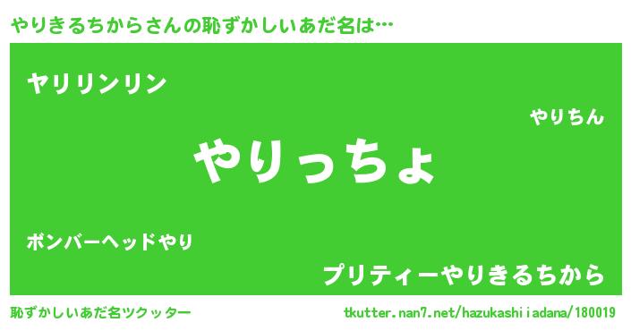 | 意味不明あだ名 | 『住所不定無職やりきるちから(43歳)』 |