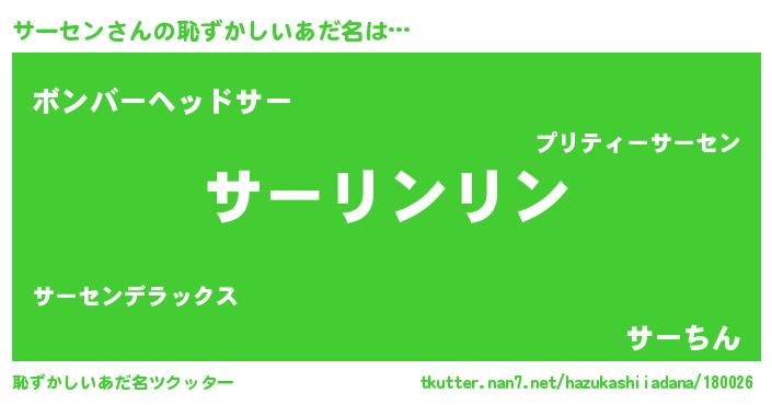| ヒーロー風カッコイイあだ名 | 『幻影騎士サー』『正義の使者サーセン』 |