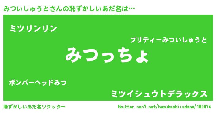 | ポケモン風あだ名 | 『ミツイダネ』『ヒミツイシュウト』 |