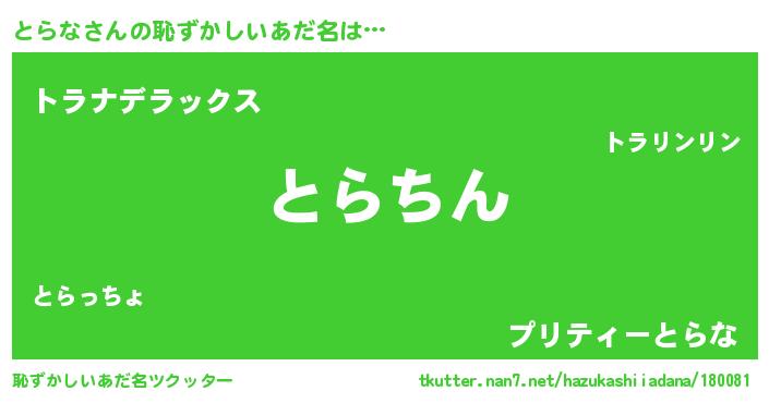 | 意味不明あだ名 | 『永久保存とらな』『自称とらな』 |