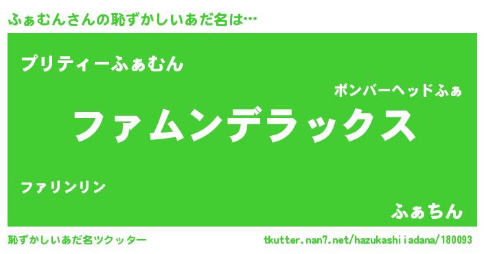 | 意味不明あだ名 | 『自称ふぁむん』『ペロリンふぁむん』 |