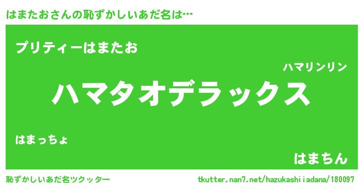 | 男性向けラノベタイトル風あだ名 | 『転生したらはまたおだった件』 |