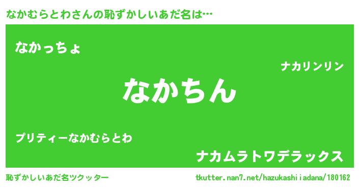 | 男性向けラノベタイトル風あだ名 | 『この素晴らしい世界になかむらとわを!』 |