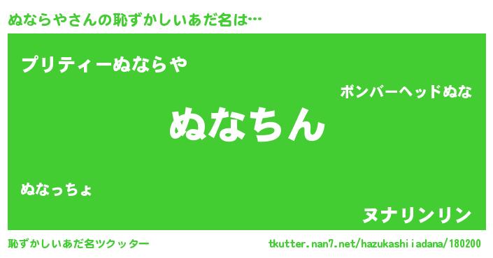 | 意味不明あだ名 | 『永久保存ぬならや』『ペロリンぬならや』 |