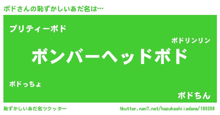 | ポケモン風あだ名 | 『ボックウザ』『ボドチュウ』 |