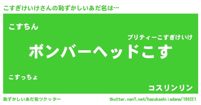 | ヘコむあだ名 | 『こすぎけいけ(遠い目)』『こすっちょ』 |