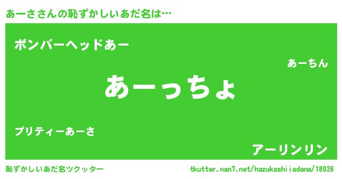 | ヒーロー風カッコイイあだ名 | 『ウルトラあーさマン』『幻影騎士アー』 |