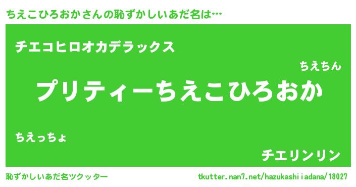 | 男性向けラノベタイトル風あだ名 | 『うちのちえこひろおかが世界を掌握している!』 |