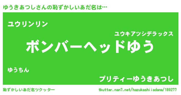 | 意味不明あだ名 | 『住所不定無職ゆうきあつし(2歳)』 |