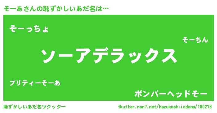 | 男性向けラノベタイトル風あだ名 | 『Re:そーあから始める異世界生活』 |