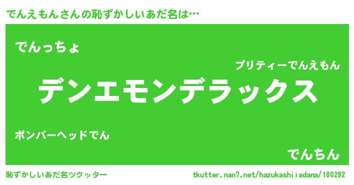 | ヘコむあだ名 | 『豆乳』『でんえもん(爆)』『でんを』 |