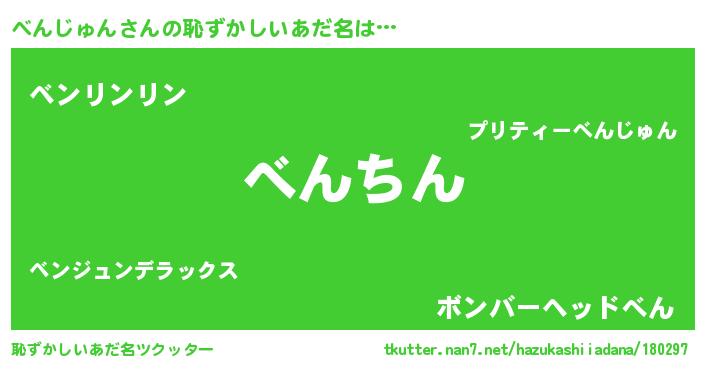 | ヘコむあだ名 | 『べんじゅん(震え声)』『べんぷりん』 |