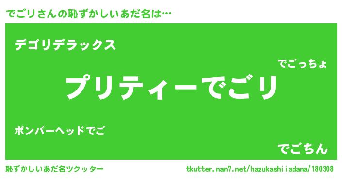 | 女子向けラノベタイトル風あだ名 | 『男装でごリの憂鬱な任務』『闇のでごリ』 |
