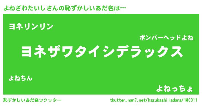 | 意味不明あだ名 | 『自称よねざわたいし』 |