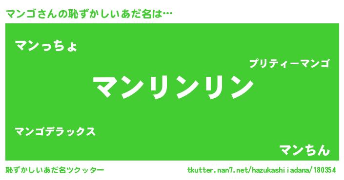 | 女子向けラノベタイトル風あだ名 | 『マンゴは平凡を望む』 |