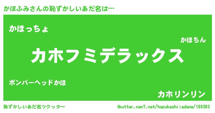| 男性向けラノベタイトル風あだ名 | 『Re:かほふみから始める異世界生活』 |