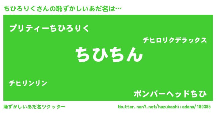 | ヒーロー風カッコイイあだ名 | 『仮面チヒダー』『ネオチヒロリク』 |