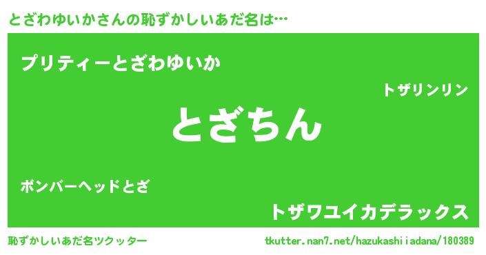| ヒーロー風カッコイイあだ名 | 『ネオトザワユイカ』『仮面トザダー』 |