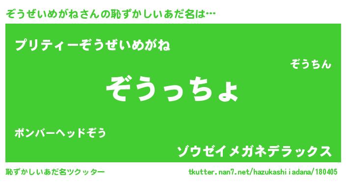 | ファンタジー風あだ名 | 『エターナルゾウゼイメガネー』 |