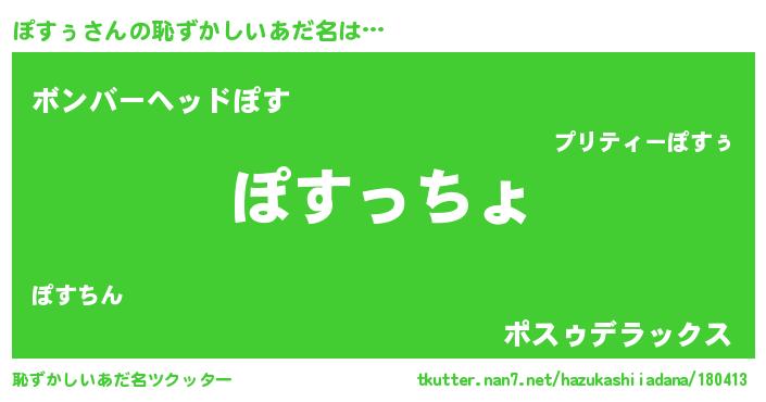 | ヒーロー風カッコイイあだ名 | 『ウルトラぽすぅマン』『最強戦士ポスゥ』 |