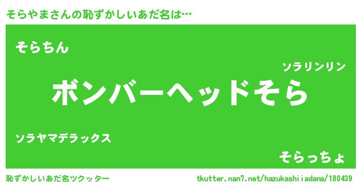 | ヒーロー風カッコイイあだ名 | 『慈愛の使者そらやま』『仮面ソラダー』 |