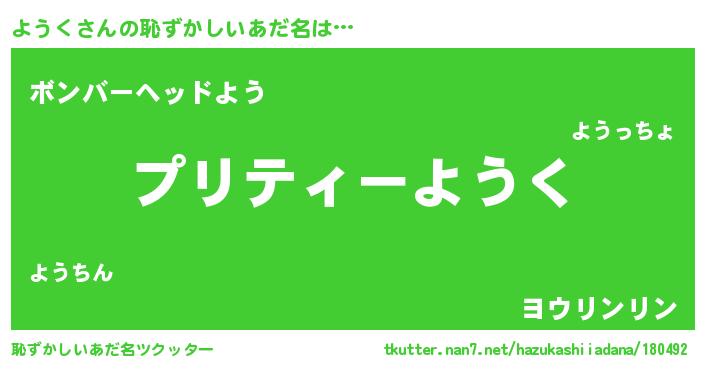 | ヒーロー風カッコイイあだ名 | 『スーパーヨウク』『愛の使者ようく』 |