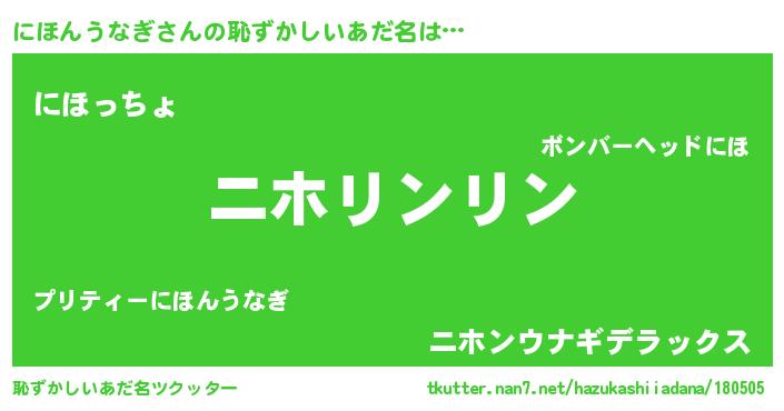 | ポケモン風あだ名 | 『ヒニホンウナギ』『ニホンダネ』 |